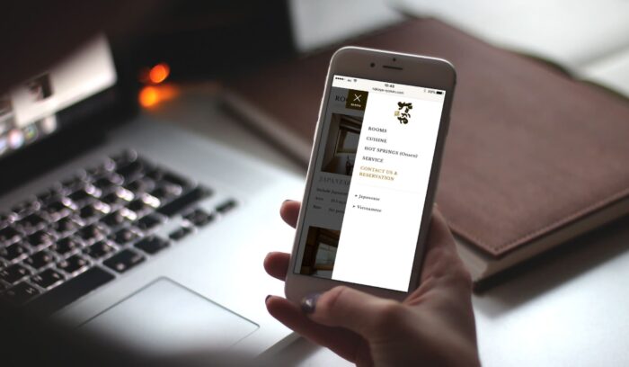 客室や温泉、サービスなどの温泉旅館ならではの魅力をシンプルに伝えるために、ワンカラムレイアウトで制作しました。